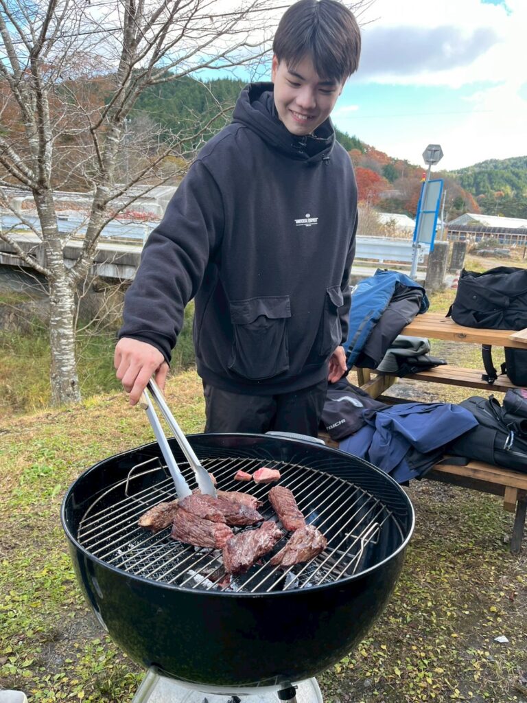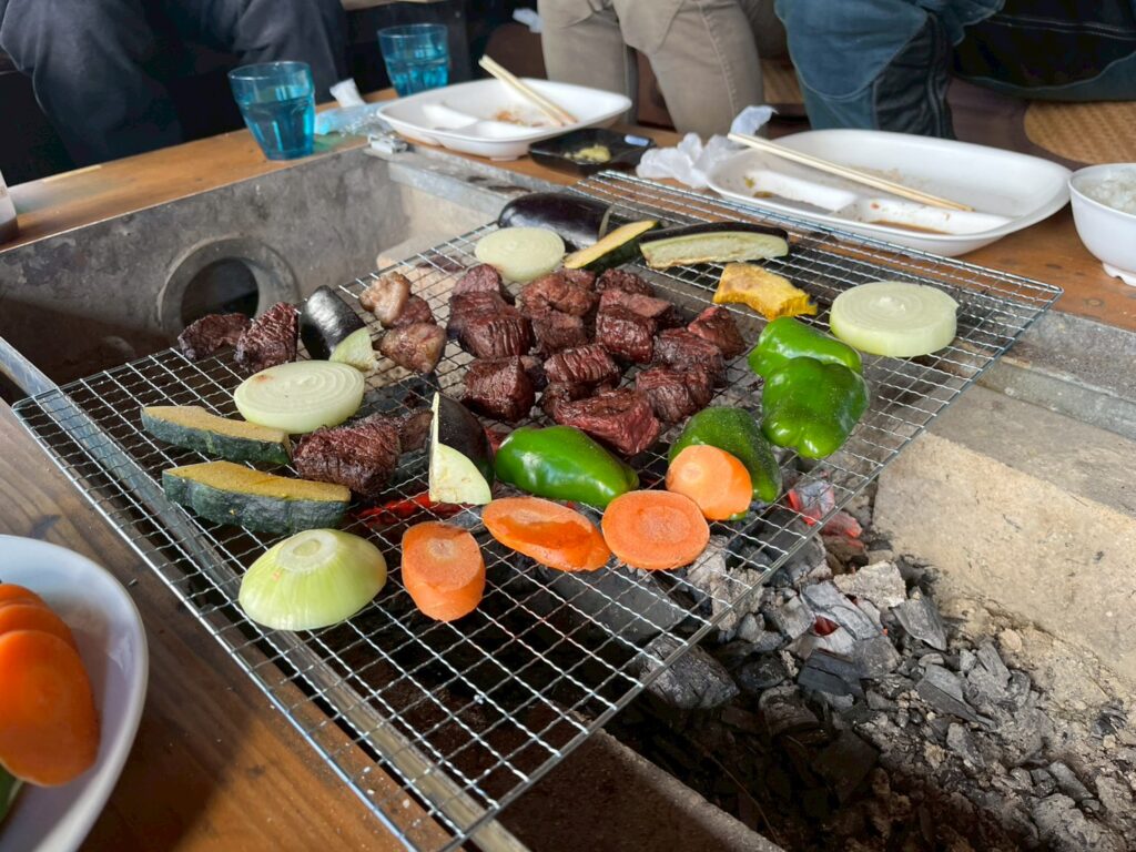 塊のお肉を自分たちで切ってじっくり焼きます🥩