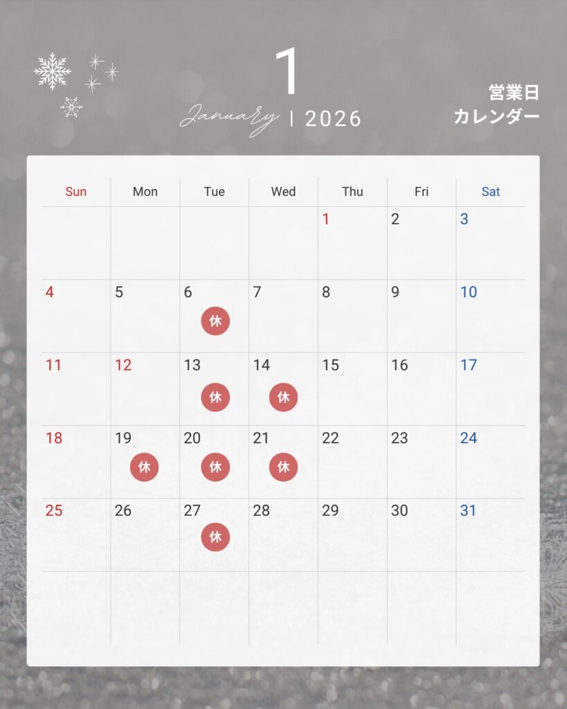 1月営業日カレンダー【鈴鹿店】