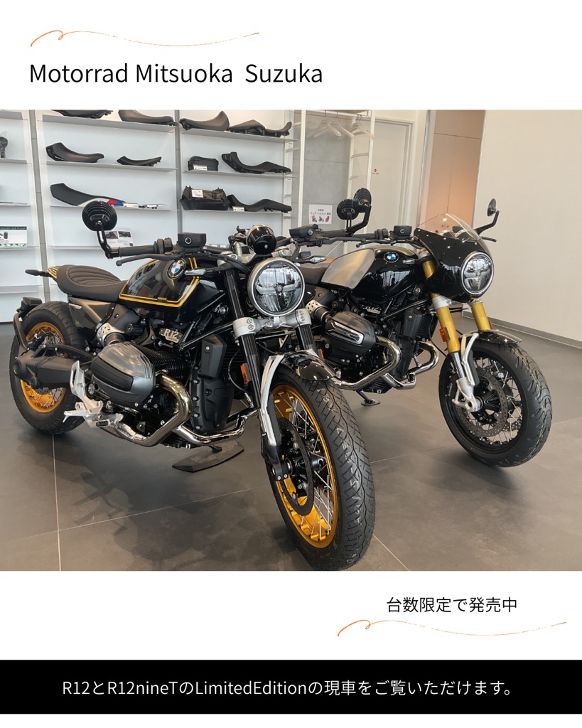 R12とR12nineTのLimitedEditionの現車をご覧いただけます。