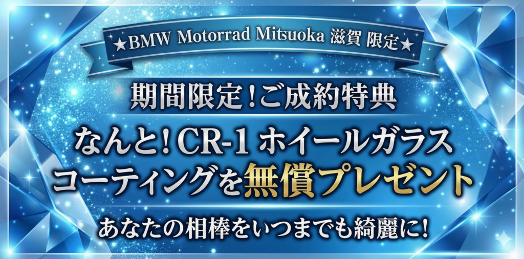 さらに期間中、滋賀店でご成約いただいた方には、「CR-1ホイールガラスコーティング」をご用意!詳細は店頭にてご案内いたします。