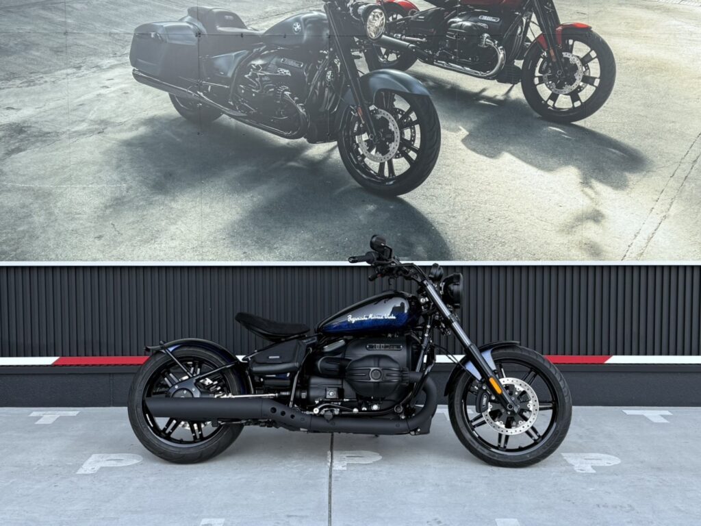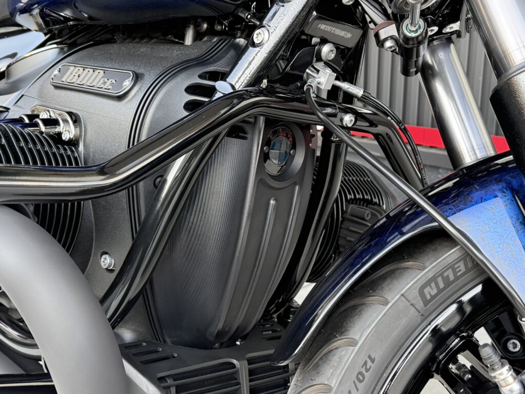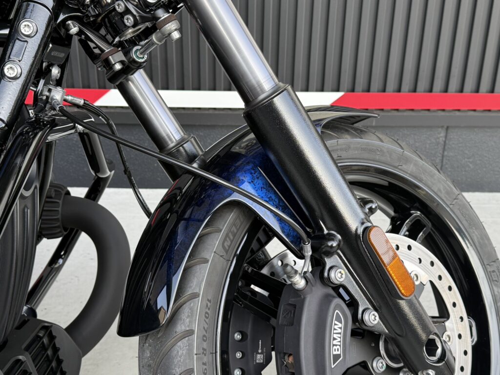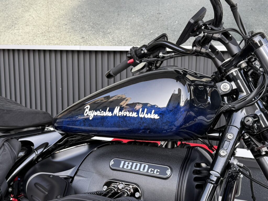 の紺と黒のコントラストが美しいカスタムペイントとBayerische Motoren Werkeのロゴ